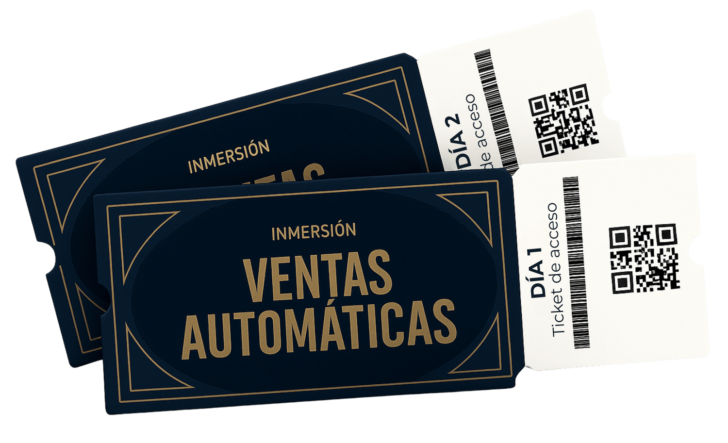 Las entradas para la Inmersión de Ventas Automáticas se venden exclusivamente a través de la página web del evento o a través de nuestros canales de comunicación oficiales que aparecen en la página. Esta es la única forma segura de garantizar su participación, con todos los beneficios y garantías garantizados.